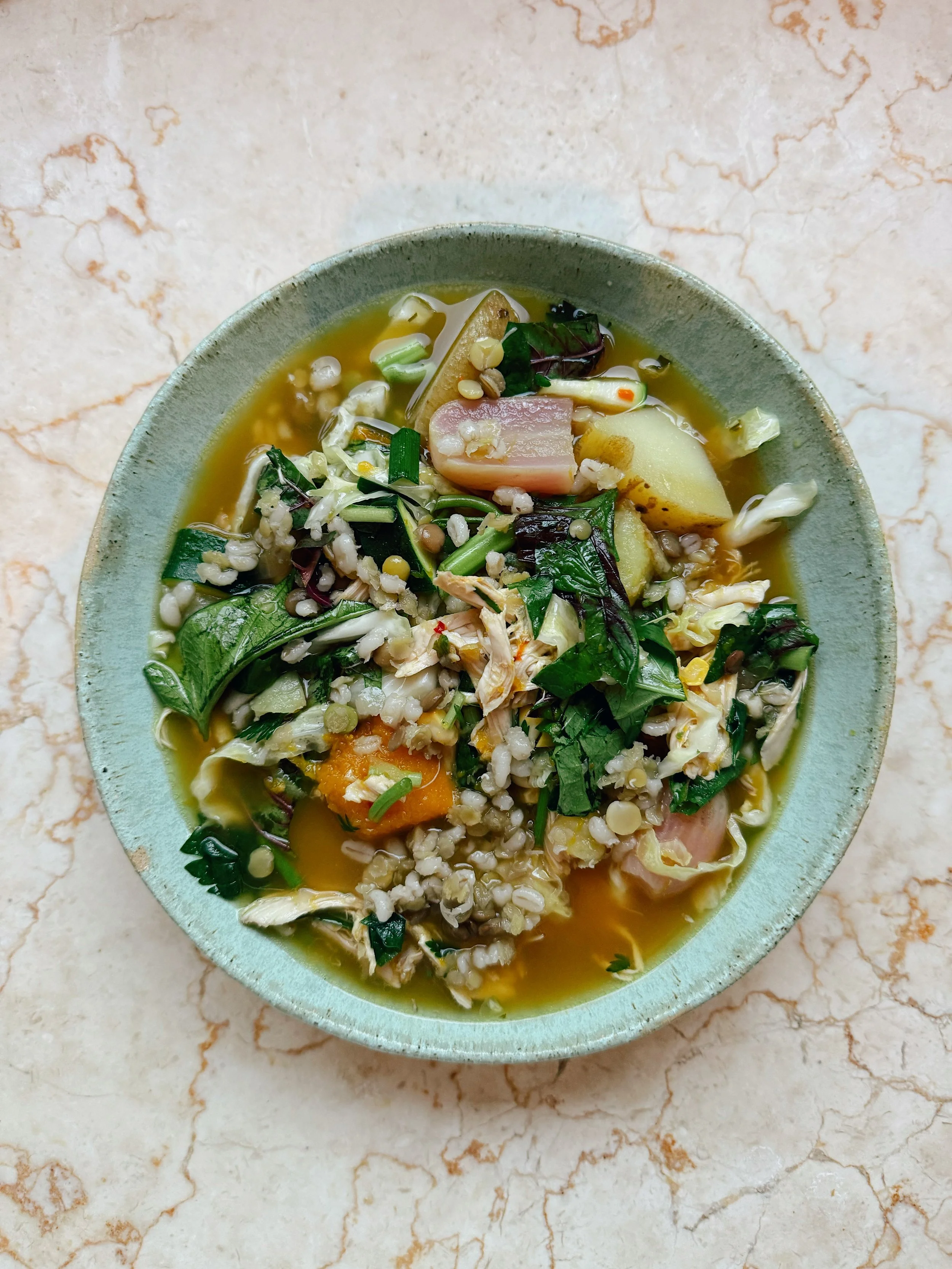 Soups are my favourite thing to eat. I would eat them all year round if it wasn’t so hot in Byron. I love how I feel when I'm eating them, like a big warm hug. And my body loves it too. I always feel like I sleep better with a light soup for dinner instead of a big heavy meal.